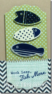 After tying the ribbon around the card front, I attached the canvas tag with a piece of Cappuccino twine. It's also attached with mounting tape.