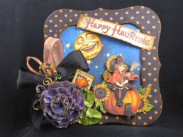 A Halloween decor piece made from chipboard and Graphic 45.  I just set both of these projects out at the first of the month!  Happy Haunting  . . .